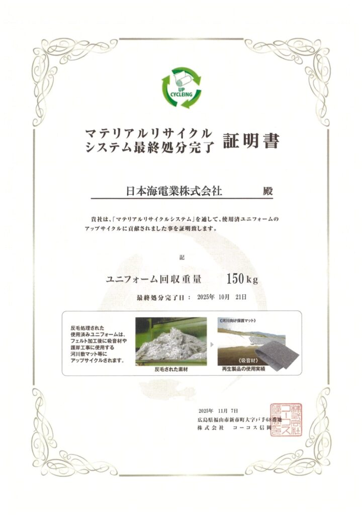 この度、社服として使用していたブルゾンをリニューアルすることになり、これまで着用していたブルゾンを廃棄せず、「マテリアルリサイクルシステム」を通してリサイクルしました。