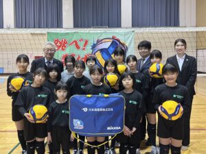 このたび当社は、KUROBEアクアフェアリーズ富山様が取り組むSDGsプロジェクトに協力し、魚津市のスポーツ少年団チーム「よつばバレー」へ、バレーボール6個とボールケースを寄贈いたしました。新しいボールが加わることで、日々の練習がさらに充実し、仲間との時間がより実りあるものになることを願っています。